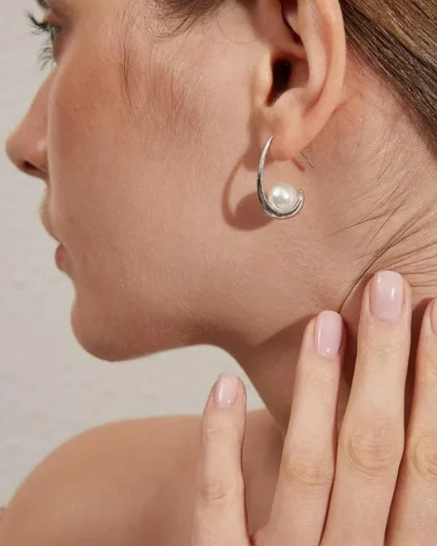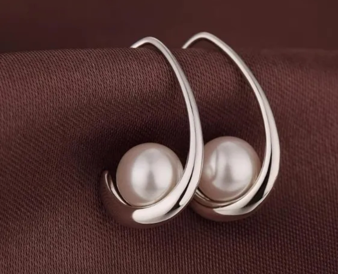 Silverpläterade örhängen med pärla.