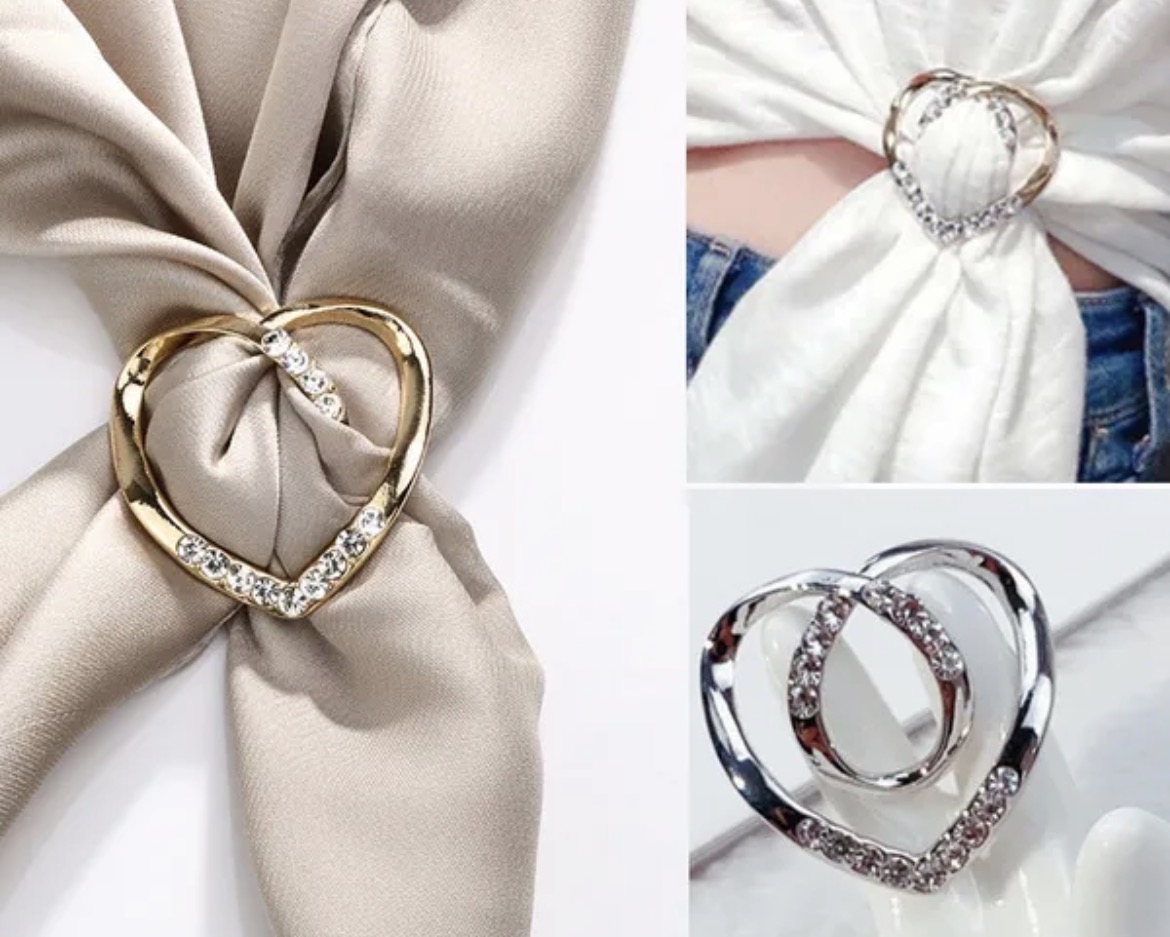 Hjärtformat smycke till din scarves eller blus/skjorta i stål och med Cubic Zirkonia stenar.